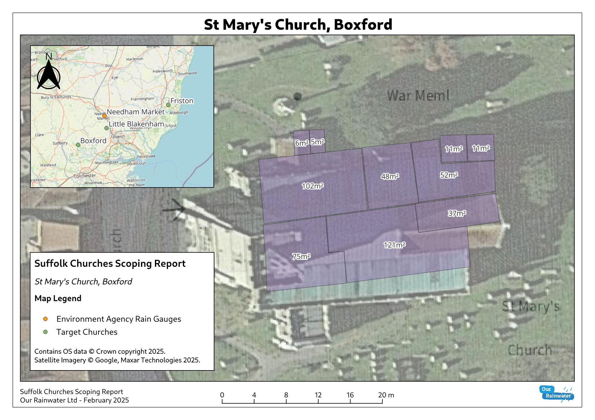 We helped slow the flow at three Suffolk church sites with optimised rainwater management.